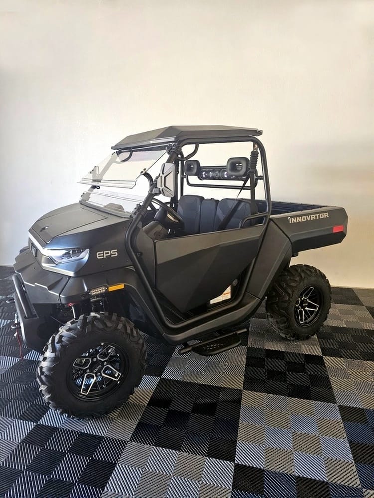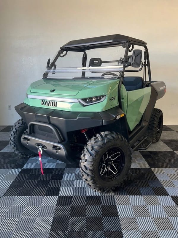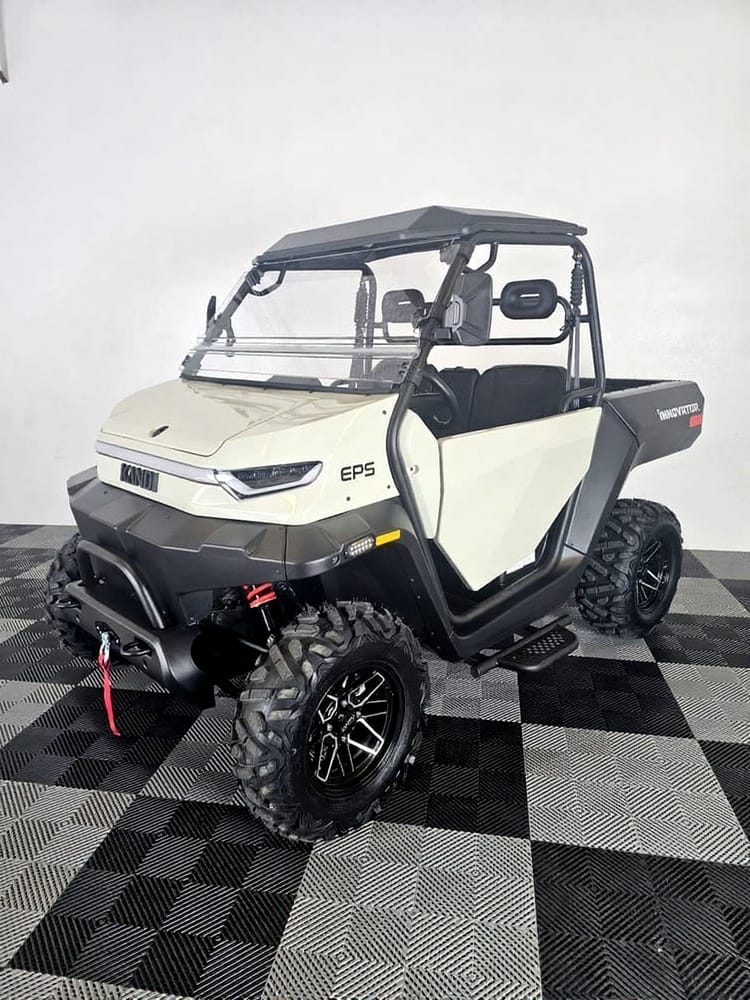 The Kandi Innovator E10K – Matte Black is a powerful all-electric utility vehicle engineered for demanding work and off-road capability. Designed for farms, ranches, construction sites, and outdoor adventures, this advanced electric UTV combines rugged performance with modern electric technology. Powered by a 75V 150Ah lithium battery and dual AC electric motors producing up to 10,000 watts, the Innovator E10K delivers smooth acceleration, quiet operation, and exceptional efficiency. :contentReference[oaicite:1]{index=1}